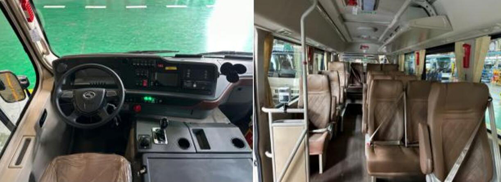 Modèle de bus No XMQ6716AYBEVL01 dans CBU Dimension globale (mm) 7125*2080*2830 Capacité de siège 22 + 1 (sièges passager + siège conducteur) 12-100% de temps de charge (min) 70-100 (avec un chargeur standard chinois 80kw / 750V GB / T) Capacité de la batterie (kWh) 114. 52 Kilométrage (km) 150-180 Spécification Essieu: Essieu avant chinois (3 4T) et essieu arrière (6T) Frein: Disque avant et frein à disque arrière, système de freinage régénératif électrique Suspension: Printemps à feuilles (avant 3 / arrière 3) ABS: Wabco ebs + esc. Pilotage: Pompe de direction électrique chinoise, boîte de vitesses de direction hydraulique chinoise Pneu: Pneu à double douche sans tube 215/75R17 5, Rim de roue en acier 17 5è ³6 00 Circuit de refroidissement: Système de refroidissement intelligent ICS Tableau de bord: VITI Can System pour le tableau de bord (avec enregistreur de conduite, pas de module d'impression) Corps: Corps de bus complet, traitement de la porte électronique, porte du conducteur et porte du milieu A / C: King Long Long non indépendant A / C intégré électrique avec fonction de refroidissement uniquement, unité de refroidissement d'eau intégrée A / C Rétroviseur: ROI LONGE LONGE SACE MIRMOIR DE VIE ÉLECTRIQUE Porte de passager: Pivot, porte passager à distance en aluminium Fenêtre latérale: Verre blanc scellé complet pour la fenêtre latérale Fenêtre du pilote: Fenêtre manuelle du cadre du cadre en aluminium Rack à bagages: Porte-bagages sur le côté gauche Bureau d'instruments: Bureau d'instruments de luxe COUVERTURE DE PLAINE: Couvercle de sol chinois avancé de l'usure avancée Siège conducteur: Siège conducteur réglable d'amortissement mécanique avec cuir artificiel (ceinture de sécurité à trois points) King Long Yuexiang des sièges réglables aux passager non réglables avec Siège passager: Cuir artificiel (pas de pédale de pied, sans glissement, ceinture de sécurité rétractable à deux points) Système audiovisuel: Lecteur mp3 Système de vidéosurveillance: Système de vidéosurveillance (500g hôte à disque dur), 4Cameas Sol: Plancher à plat Peinture: Peinture plate Auxiliaire: Pas de radiateur Horloge électrique à basse tension Garde-corps derrière la porte du passager Moniteur inverse de couleur (affichage LED de 7 pouces sur le bureau de l'instrument et 1 caméra) Sunshade conducteur et copilote, rideaux pour toutes les fenêtres latérales Hatche de toit d'urgence de type de verre avec Sunshade Version de base de l'ordinateur à bord Kingwin Inverser le buzzer Marteau de sécurité * 5pcs Lampe de toit * 3pcs, lampe à atmosphère intérieure Extincteur intérieur 2kg * 1pc Batterie: Catl Lithium Iron Phosphate Battery System (114 52kWh) Moteur long roi, TZ290XSKL120, aimant permanent synchrone Moteur d'entraînement: moteur Puissance de pointe / couple --- 160kw / 1200 nm VCU: Contrôleur de moteur électrique King Long et contrôleur cinq en un Mode de charge: Standard GB chinois, une prise de charge dans le bus Unité de pompe électrique: Pompe électrique à usinage VIE
